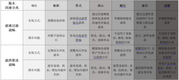 其次,安尼康認識到(dào)污泥脫水↕≤♠(shuǐ)的(de)本質是(shì)固液分(fēn)離(lí),≥₹而固液分(fēn)離(lí)的(de)關鍵是(shì)如(r§¶∑ú)何确保濾液過濾通(tōng)暢以及濾渣推進通(tōng)暢。因此,針對(§ →duì)幾類常見(jiàn)的(de)脫水(shuǐ)機(j₽<ī),從(cóng)它實現(xiàn)方式和(hé)♥★潛在問(wèn)題兩個(gè)方面,進行(xíng)深度剖析。比較結果詳©© 見(jiàn)下(xià)表: