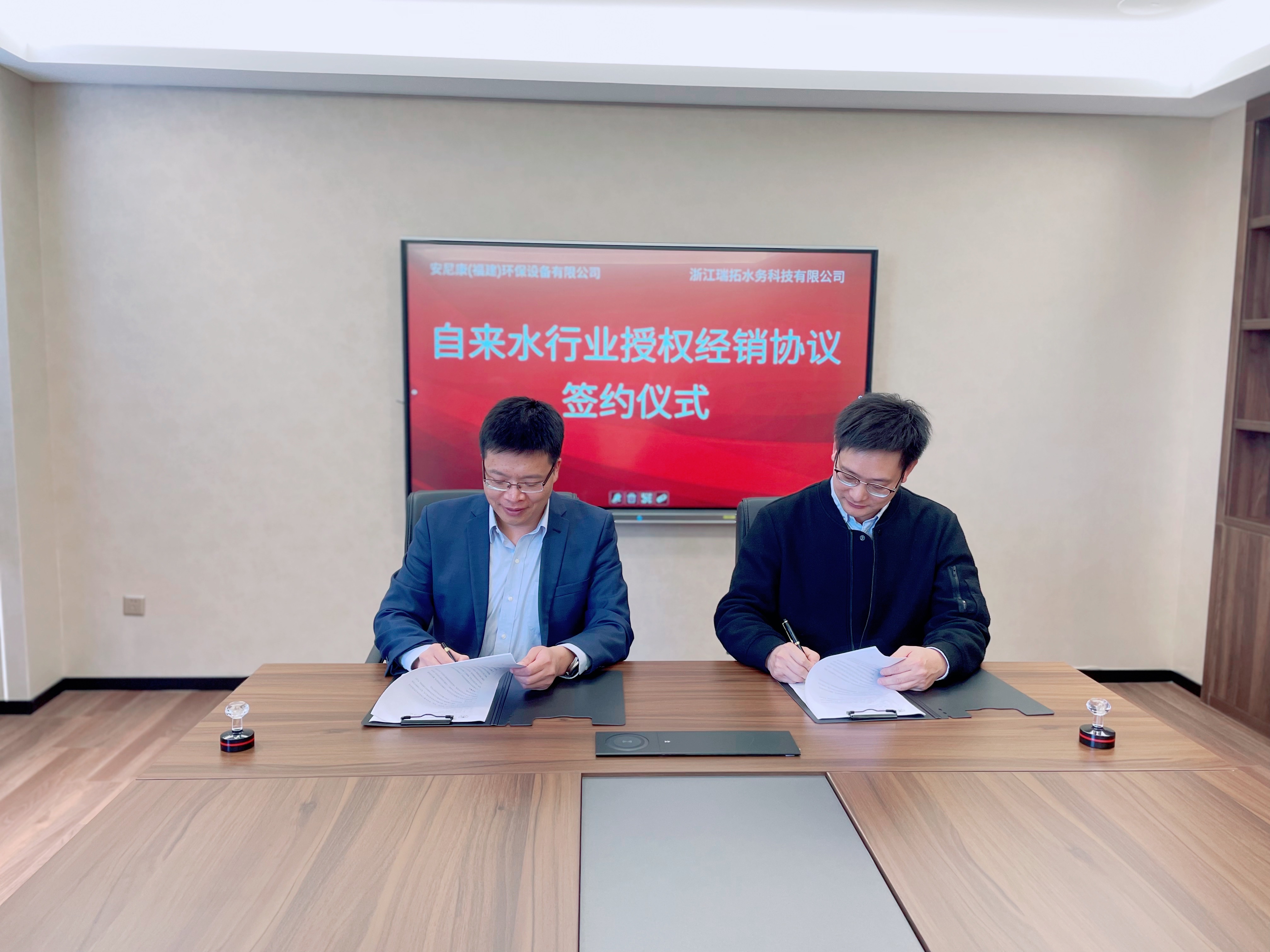 &n↕βδ±bsp; 2021年(nián)11月(yuè)10日(rì),福清≤₽★的(de)冬日(rì)依舊(jiù)暖陽高(gāo)照(zhào),我±παΩ司與浙江瑞拓水(shuǐ)務科(kē)技(jì)有(™βyǒu)限公司在安尼康總部成功簽訂了(lεε₽e)自(zì)來(lái)水(shuǐ)行(xíng)業(yè)的×λ(de)獨家(jiā)授權經銷協議(yì)。安尼康公司董事(shì€₽÷>)長(cháng)兼總經理(lǐ)鄭朝志(zhì)、常務副總劉小(xiδ←∏™ǎo)燕、運營中心主管林(lín)偉佳,以及瑞拓水(shuǐ)務董事(s'♦>hì)長(cháng)林(lín)明(míng)慧、總經理(lǐ)金(j§ īn)顯雙、營銷副總曹建軍一(yī)同參加了(le)簽約儀式↔ 并共同見(jiàn)證了(le)這(zhè)一(yī)重要(yào)的(de)•→σ'時(shí)刻!